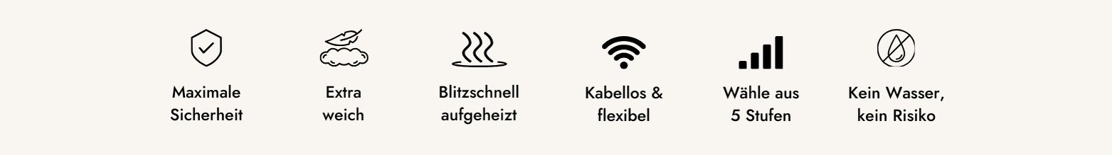 Unsere Thermo-Sense Technologie ist ein in Deutschland entwickeltes & patentiertes Heizsystem. Sie verschwindet unspürbar im Produkt und sorgt für eine schnelle und gleichmäßige Wärme. Unsere Vaermflasche ist dadurch super flexibel ohne störende spürbare elektrische Bauteile. Im Gegensatz zu einer herrkömmlichen Wärmflasche ist sie mit einem speziellen Heizfluid gefüllt und versiegelt. Eine Überhitzung ist durch ein mehrstufiges Sicherheitssystem ausgeschlossen, so dass du dich beruhigt zurück lehnen kannst.